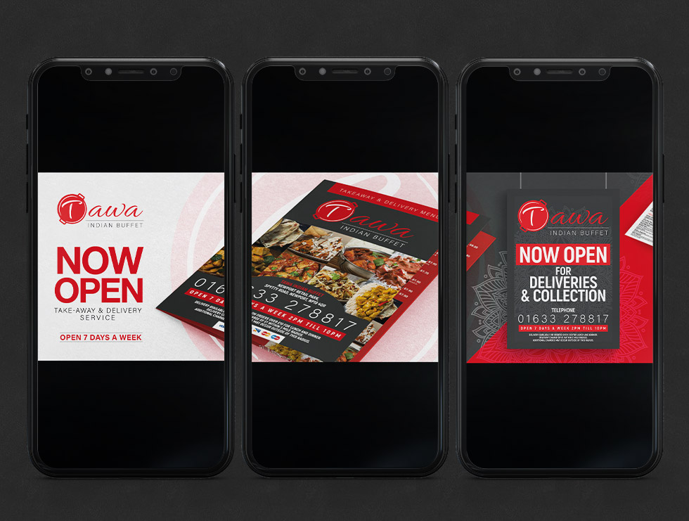My brief consisted of creating and designing the new Take-Away Menu and associated social media graphics to advertise this new service for the restaurant.